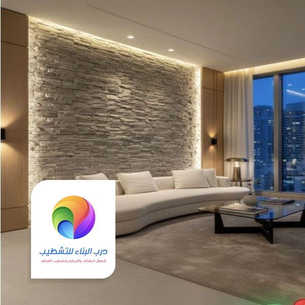- دمج الخامات بذكاء: نمتلك رؤية فنية لدمج بديل الحجر مع الستيل، الخشب، والضوء في تناغم لا يتقنه الهواة.